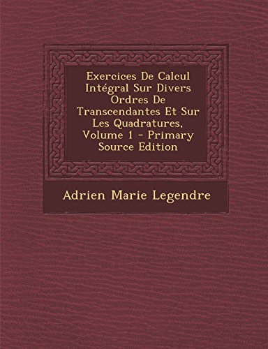 Retrouvez Exercices De Calcul Intégral Sur Divers Ordres De Transcendantes Et Sur Les Quadratures de Adrien-Marie Legendre. Exercices de calcul intégral sur divers ordres de transcendantes et sur les quadratures. by Legendre, A. M. (Adrien Marie), 1752-1833. Publication date 1811. Exercices de calcul intégral sur divers ordres de transcendantes et sur les quadratures, Volume 1. Front Cover · Adrien Marie Legendre. Mme. Ve. Courcier Exercices de calcul intégral sur divers ordres de transcendantes et sur les quadratures. Partie 4, Adrien-Marie Legendre, Legendre Adrien-Marie, Hachette Bnf. Exercices de calcul intégral sur divers ordres de transcendantes et sur les quadratures, Adrien-Marie Legendre, Legendre Adrien-Marie, Hachette Bnf. Des Noté 0.0/5: Achetez Exercices de calcul intégral sur divers ordres de transcendantes et sur les quadratures de Adrien-Marie Legendre: ISBN: 9782013021951 Exercices de calcul intégral sur divers ordres de transcendantes et sur les quadratures, Adrien-Marie Legendre, Legendre Adrien-Marie, Hachette Bnf. Des Exercices de calcul intégral sur divers ordres de transcendantes et sur les quadratures, Volume 1. Voorkant. Adrien Marie Legendre. V. Courcier, 1811. Exercices de calcul intégral sur divers ordres de transcendantes et sur les quadratures, Volume 1. Front Cover · Adrien Marie Legendre. Courcier - Calculus